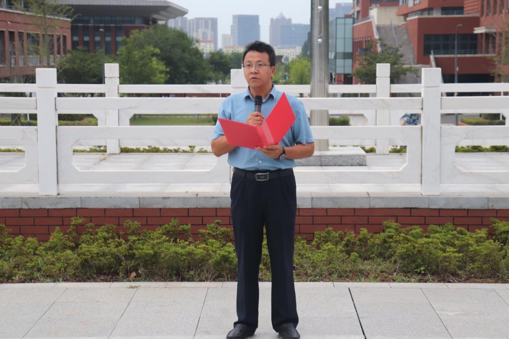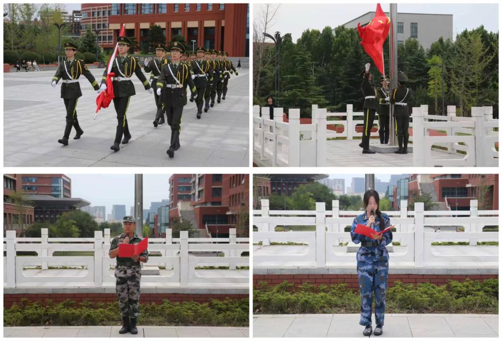 院党委副书记董虎发表讲话,他指出:“从抗战时期的‘小米加步枪’到如今的智能化装备,正是工匠精神的生动体现。”,勉励师生要传承红色基因,深入学习党史校史;要锤炼过硬本领,在学院“一心两端三级四阶五步”的双创体系中勇攀高峰;要服务国家战略,为制造强国建设贡献机械力量。仪式最后,全体师生手持国旗齐唱《歌唱祖国》。在初秋的晨光中,铿锵的歌声既是对抗战英烈的深情告慰,更是新时代机车人对“制造强国”使命的庄严宣誓。