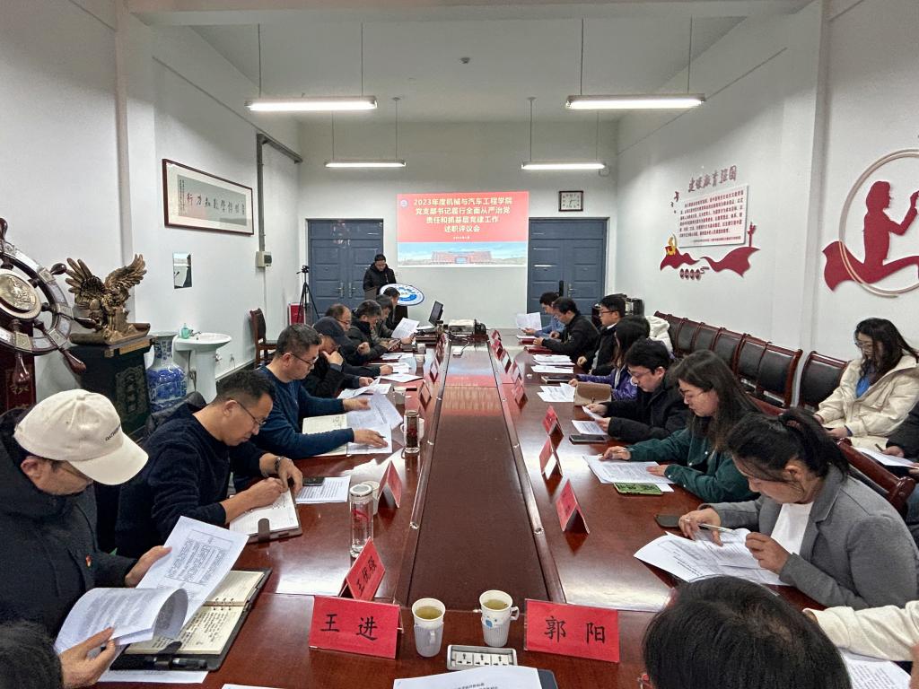 为深入学习贯彻习近平新时代中国特色社会主义思想,进一步推进全面从严治党向基层延伸,切实提高基层党建水平和质量,MG冰球突破官网党委于1月10日下午在汽车实验楼408会议室召开2023年度党支部书记履行全面从严治党主体责任和抓基层党建工作述职评议会,党委常委、副校长李长河,组织部组织员办公室副主任东忠方列席会议,学院班子成员、党支部书记参加会议。学院党委副书记董虎主持会议。