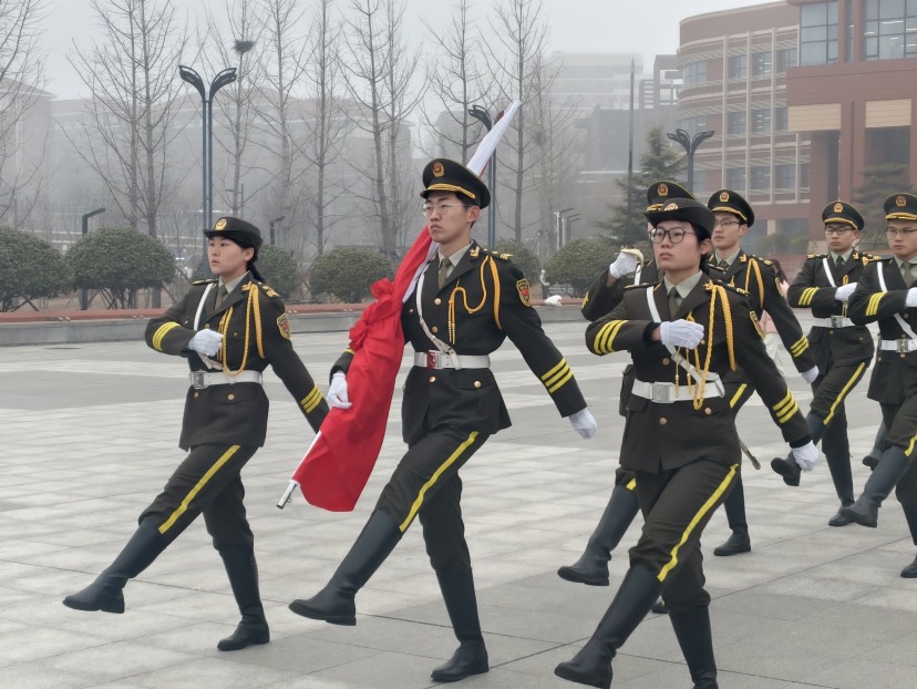 晨曦微露中,国旗护卫队成员身姿挺拔,迈着坚定有力的步伐,护卫着鲜艳的五星红旗,昂首阔步迈向升旗台。激昂雄壮的《义勇军进行曲》奏响,音符似跳跃的火焰,点燃了每个人心中的爱国情怀。900余名师生整齐列队,怀着深深的崇敬之情,向国旗行注目礼,目光紧紧追随着那一抹鲜红 ,心中满是对祖国的热爱与敬意。