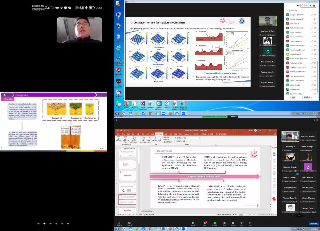 在随后两日的实验室参观环节中,各校师生采用线上观看的形式,分别参观了日本九州工业大学的空间机器人实验室与热传导实验室、台湾科技大学的生物微机电实验室及其MG冰球官网的摩擦学与表面工程实验室。MG冰球官网摩擦与表面工程实验室的同学们精心准备了线上直播,并进行了详细讲解,为各校师生奉献上了一场精彩的视听盛宴。