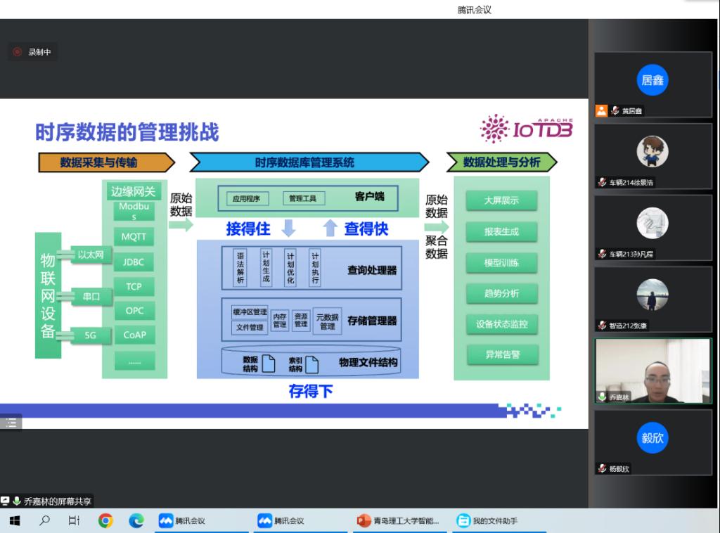 第一场讲座,乔嘉林主要讲解了时序数据的产生、采集传输、数据管理和分析处理等方面的专业知识,介绍了工业时序数据库IoTDB的关键技术和应用价值。此次讲座让学生直观全面地认识了工业时序数据库,展示了一个丰富多彩的工业物联网数据世界,拓宽了视野。