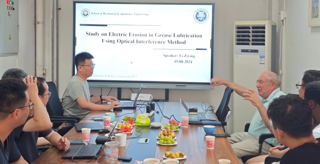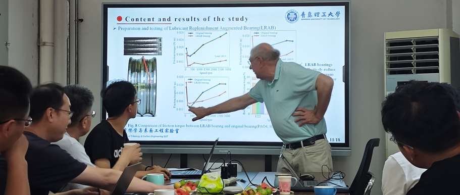 报告会上,郭峰对高德·珀尔教授一行的来访表示热烈欢迎,高度评价了他的学术成就,并向高德·珀尔教授介绍了MG冰球突破官网基本情况和摩擦学与表面工程实验室的发展概况。高德·珀尔教授对学院的热情接待表示感谢,随后,结合风电大型轴系中滚动接触与平行滑动的发展现状进行了专题报告,系统介绍了国际轴承企业“以滑代滚”的典型应用方法,重点阐述了从小轴系到大轴系的接触与润滑中亟需突破的难点问题。报告会激发了与会师生的浓烈兴趣,提问互动环节气氛十分热烈。