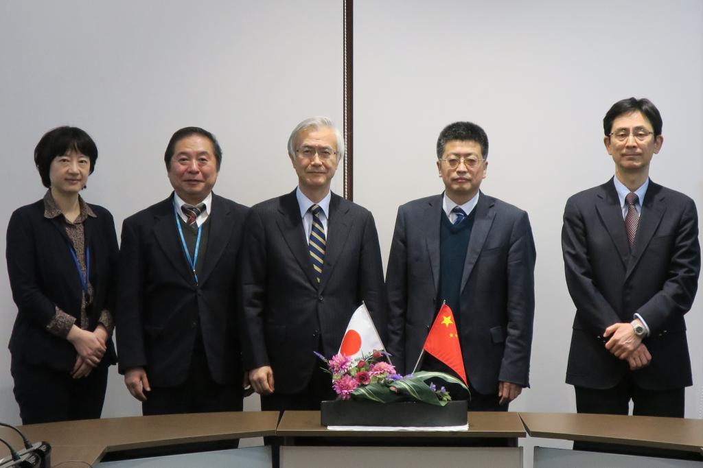 图为MG冰球突破官网院长郭峰教授与日本九州工业大学校长尾家祐二教授的行政团队会谈