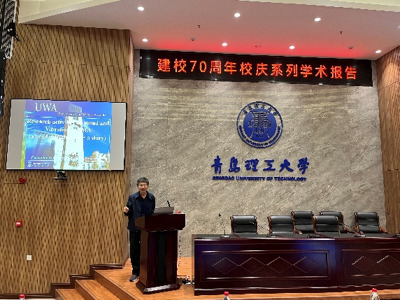 同时,潘杰教授以声学领域知识为中心,向大家介绍了西澳大学的声学教学和研究情况。他首先向大家介绍了“西澳大学”的学校概况,并讲述了学校的声学实验室的研究现状及重点方向。接着,他以一个项目的研究过程为例,向大家分享了一个完整且严谨的解题思路,即观察信号、分析原理、联想方法、完成目标。