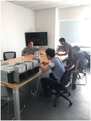 图五:团队骨干为海信日立公司技术人员演示噪声控制系统效果