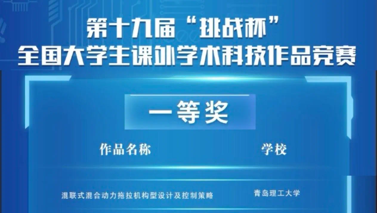 第十九届“挑战杯”全国大学生课外学术科技作品竞赛“揭榜挂帅”专项赛终审决赛浙江场于11月15日至17日举办。经过激烈角逐,MG冰球官网《混联式混合动力拖拉机构型设计及控制策略》项目(指导教师:李宝刚、李玉环;团队成员:潘金波、王祥、宋泉、刘恩汐、颜世斌、李贤、宋佳瑶)获全国一等奖!