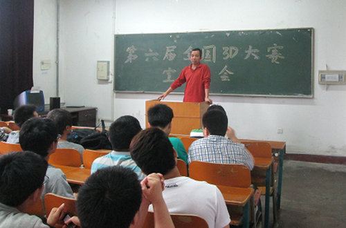 为提高同学们的自主创新能力和软件使用能力,5月31日下午,机械学院全国3D大赛宣讲会在机械红楼308教室举行,机械学院材料成型教研室主任褚忠、团总支书记贺治成出席了启动仪式。学院报名参加2013年度三维设计大赛的60余名同学参加了宣讲会。