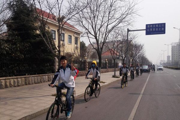 随后,为将环保意识传播给更多的人,由30名机械学院学生组成的3个车队在唐岛湾沿岸展开骑行活动,向人们宣传低碳出行的环保意义。活动中,同学们骑着带有环保标语的自行车穿梭在马路上,引来了不少市民的驻足围观和讨论,一位中年男子对骑行活动感到好奇,拦下同学并与其进行交流,同学积极耐心地向男子讲述了本次活动的意义,中年男子感慨到人们在潜意识中都知道要环保,但很少有人为环保付出过实际行动,并且赞扬说:“这样的骑行活动看似简单,却能潜移默化的敲响人们心中的警钟,唤醒市民们的环保意识。”