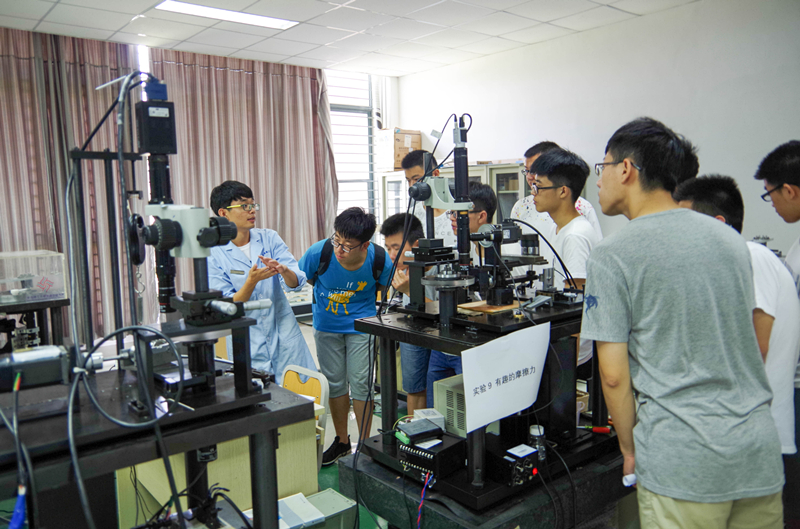 为响应政府关于开展实验室开放日的号召,提高本科生科学素养,发挥学术团体的公益职能,MG冰球突破官网摩擦学实验室于7月11日面向机械学院和汽车学院本科生开展了“实验室开放日”活动。本次活动分为五个环节:听PPT展示了了解摩擦学故事和摩擦学实验室发展历史;参观润滑脂技术、光弹流、微纳米测量等5个实验室,了解科研所用的各类仪器;每名本科生从实验室提供的9个实验题目里面挑选1-2个,在硕士生的指导下动手做实验;动手组装指尖陀螺,了解轴承的使用;填写问卷调查和抽奖。 这是本实验室第二次举行开放日活动。