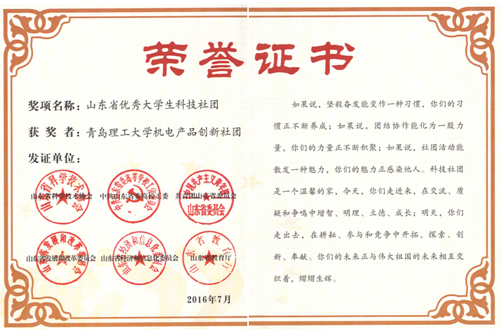 喜讯:MG冰球官网学生社团被评为山东省优秀大学生科技社团
