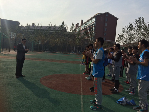 11月11日中午,机械学院新生篮球赛决赛在观众们的呐喊声中拉开帷幕,出席本次比赛的领导有党总支副书记李国涛老师,团总支书记贺治成老师,13级辅导员张翠芳老师。