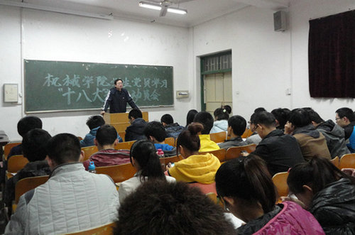 为了深入贯彻学习党的十八大精神,加强学生党员自身政治文化素质修养,11月16日下午,机械学院学生党员学习党的十八大精神动员会在机械学院楼308室召开。机械学院10级辅导员张建军老师以及09级、10级党员和预备党员参加了此次动员会。