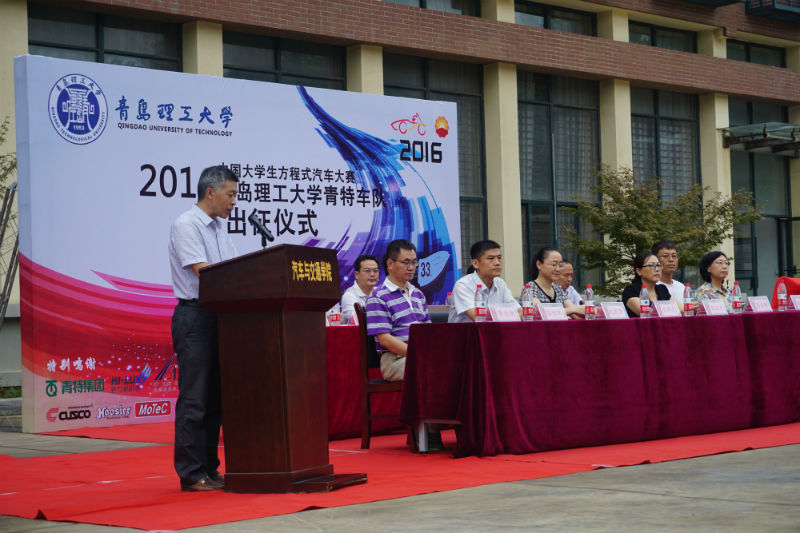 9月27日下午,MG冰球突破官网青特车队新车——FSC赛车QUT-6发布会在新校区汽车试验广场举行。汽车与交通学院院长王丰元致辞,学生处、宣传部、团委、汽车与交通学院等部门、学院负责人及车队师生参加发布会。