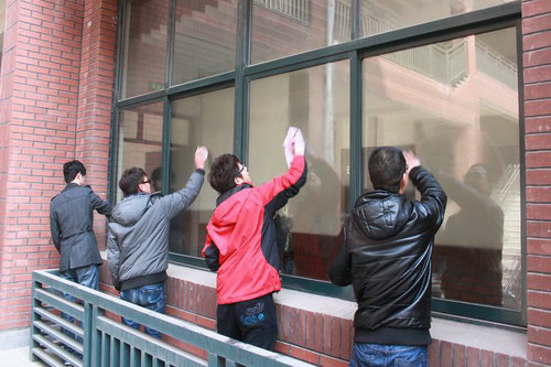 下午2点,同学在嘉陵江路校区教学楼集合。首先,学生会负责人对学院负责的公共卫生区域进行了划分,对同学们进行分组,并强调了安全注意事项。随后,各小组成员按分配好的任务,到达各清洁区域打扫卫生、擦玻璃。活动过程中,同学们热情高昂、不怕累不怕脏,认真擦洗,把每块玻璃都擦得干干净净。本次活动同学们以实际行动践行了雷锋精神,学习雷锋,奉献他人,提升自己,为建设美丽校园贡献力量。同时,培养了大家保护环境的意识和习惯,让同学们在合作中感受到团结协作的可贵。