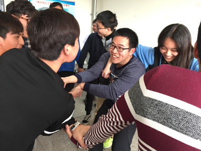 结束后,两位老师用简短的话语总结并且阐述了这次活动的意义,希望同学们明白团队协作,彼此沟通交流的重要性。同学们都体会到了老师的良苦用心。通过本次活动,培养了同学们彼此间相互信任,相互帮助的能力,提高和改善了他们的人际交往能力与沟通交流方式。