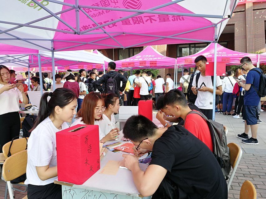 特色迎新,亮点纷呈。设置党员先锋岗,迎新送温暖。MG冰球突破官网在迎新现场设置了党员服务区、党员先锋岗,全体党员佩戴党徽,亮明身份,开展志愿服务活动。在家长休息区,学生党员为新生家长递上一杯水,道一声“家长,您辛苦了”;在党员先锋岗处,开展了寄语未来主题活动,学生在明信片上或写下自己的心愿,或写下未来四年的规划,家长则纷纷写下对孩子的寄语和殷切的期盼。此次活动给同学们提供了一个与未来对话的机会,以独特的方式保存下参与者对未来的期许,由辅导员老师保存并于四年后学生毕业时还给学生本人,时刻提醒学生不忘初心,砥砺前行。