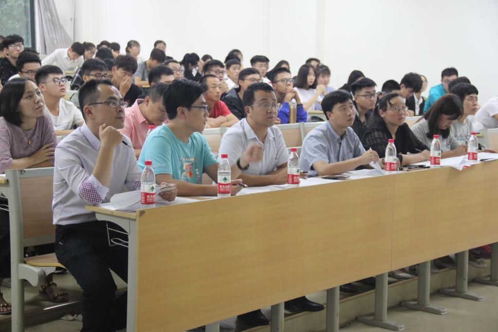 答辩开始后,主持人宣读评分细则,随后根据赛前确定的抽签顺序,答辩同学依次上台进行现场PPT答辩。答辩选手分为两类,国家奖学金预答辩14人,省政府奖学金预答辩13人;各位答辩者优异的学习成绩、众多的奖项专利及丰富的社会实践经历赢得了现场阵阵掌声。答辩结束后,林海涛对参赛选手的答辩表现进行了点评,并对答辩中出现的问题提出了建议。答辩成绩在答辩结束后由工作人员核算统计并经评审组老师确认后现场公布,最终优选出11位学生参加学校答辩,其中国家奖学金8人,省政府奖学金3人,全体工作人员和获奖者合影留念。