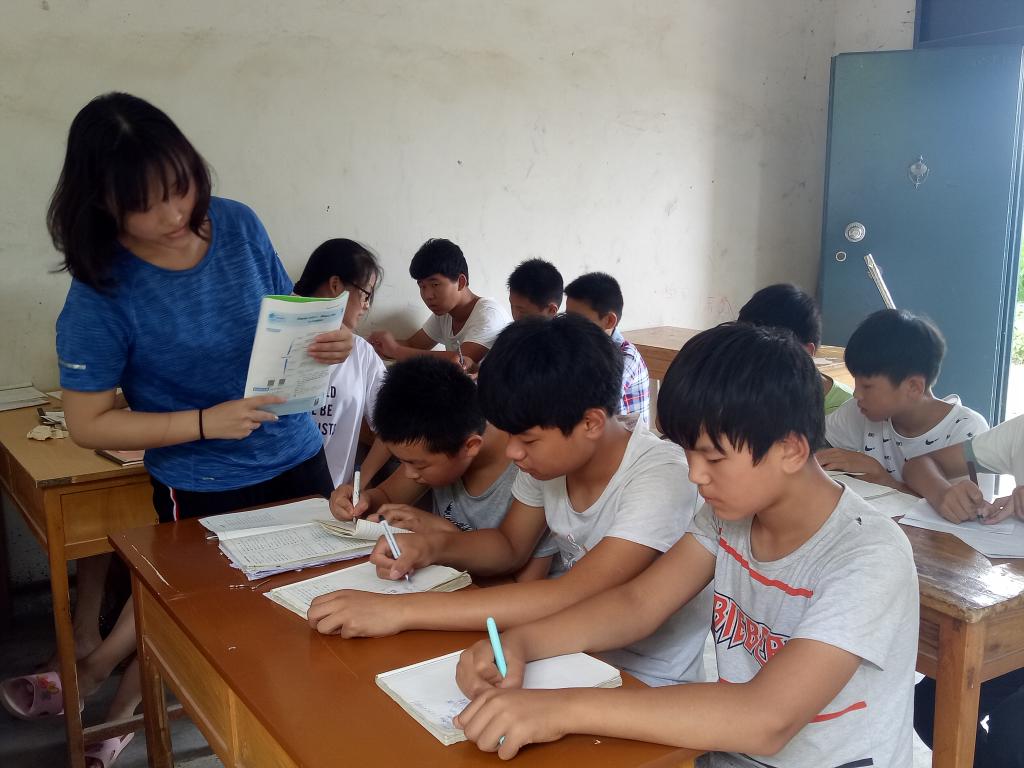 村民代表胡强满脸笑容地送上锦旗:“感谢这次支教队员在这儿认真地教课,高温的环境下只有几个风扇吹着,条件很艰苦,还能一直坚持下来很不容易,希望你们下一年还能来支教!”支教团团长胡盼双手接过锦旗表示:“我们只是完成了自己该做的,倒是给您们添了不少麻烦,又是找住处,找桌子凳子,借风扇,还把自己家里的床借给我们,天热的时候还送西瓜、雪糕,我们特别感谢你们的热情好客,在这儿这几周确实和村民孩子们产生了十分深厚的感情。”