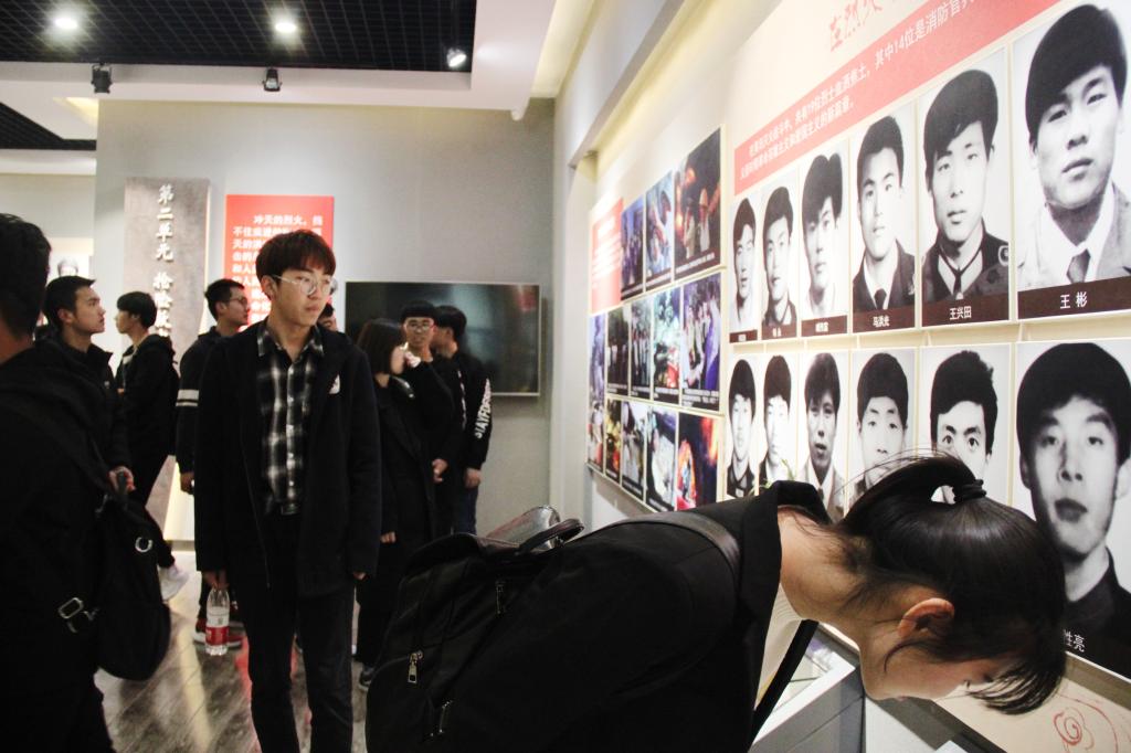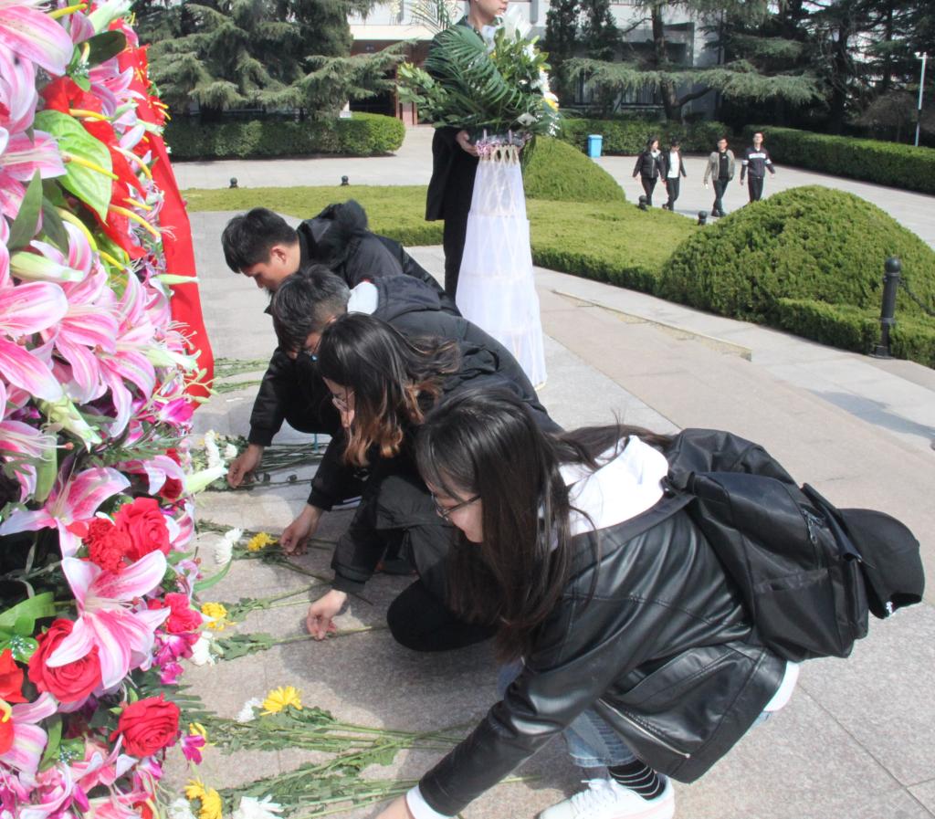 在讲解员带领下,同学们围绕烈士纪念碑,向镌刻着17120位烈士姓名的英雄纪念碑默哀致敬,并献上花环,寄托深深的缅怀之情。在肃穆庄重的讲解中,仿佛重现了血雨腥风的战争岁月,中华民族的优秀儿女们为了祖国的解放,不惜抛头颅、洒热血的场景。墓碑瞻仰完毕后,同学们走进烈士纪念馆,沿着历史的足迹,从第一次国内革命战争到解放后社会主义建设,随着参观的不断深入,同学们深切感受到中国共产党是如何肩负起历史重任,组成抗日民族统一战线,建立新中国,带领全国人民实现中华民族的伟大复兴。