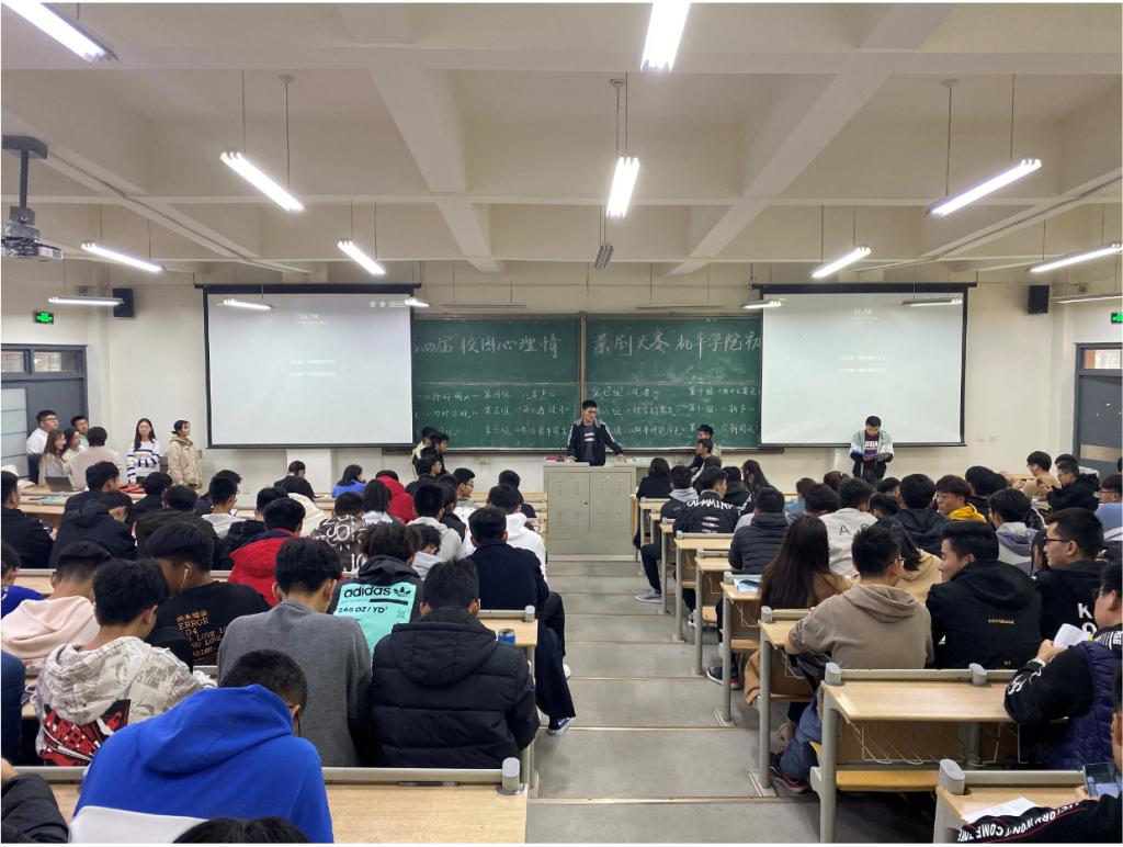 为营造阳光、健康的校园文化氛围,充实发挥大学生的自我教育功能,11月20日下午,MG冰球突破官网在主教学楼A125举行校园心理情景剧大赛,参赛学生主要来自2019级学生,辅导员殷宗华、吴蒙蒙、王悦佳、吴静担任评委,学院部分学生代表观看比赛。
