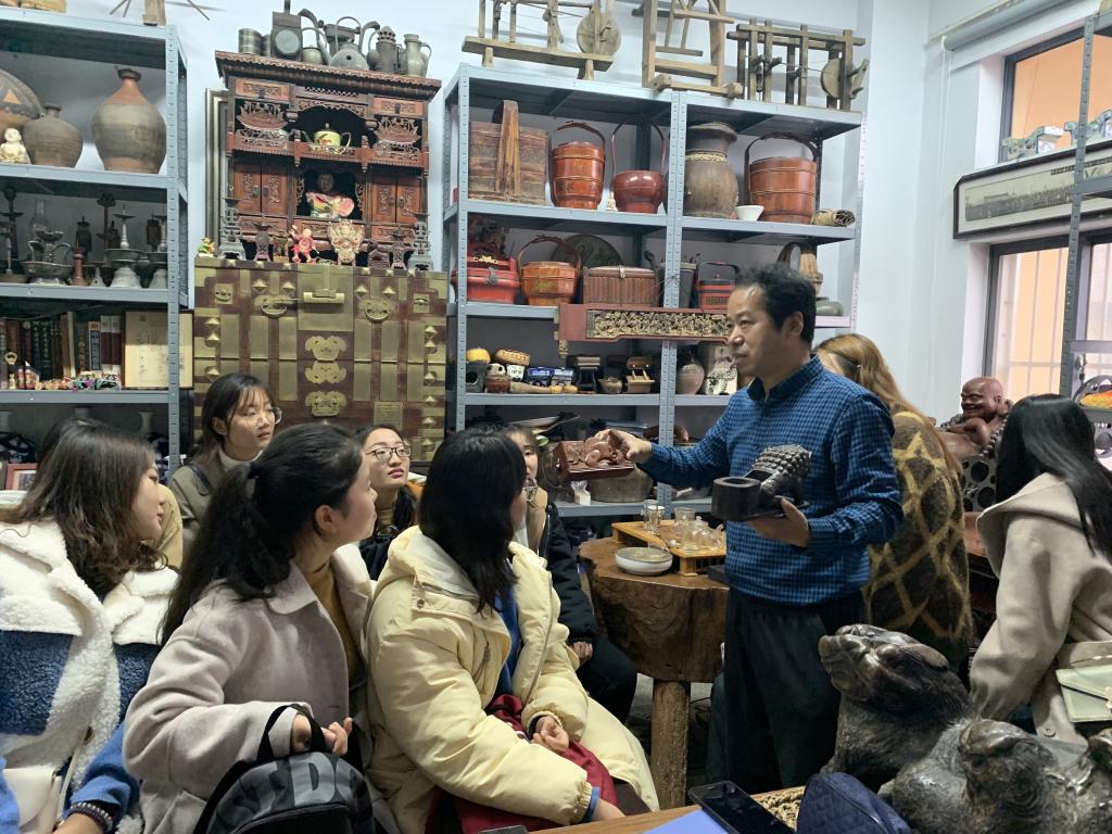 在青岛大学非物质文化遗产研究中心侍锦民艺博物馆内,青岛大学艺术学院侍锦教授为同学们作《多彩非遗与美好生活》的专题讲座,结合侍锦教授几十年来收藏的民间艺术品,生动形象地论述了家文化、非遗文化与价值观形成的关系,侍锦教授的幽默风趣语言引发了同学们的阵阵掌声。这次活动让同学们从不同角度地理解了非遗传统文化的价值观念,引发了同学的深度思考,增强了同学们对中华民族传统文化的自信。
