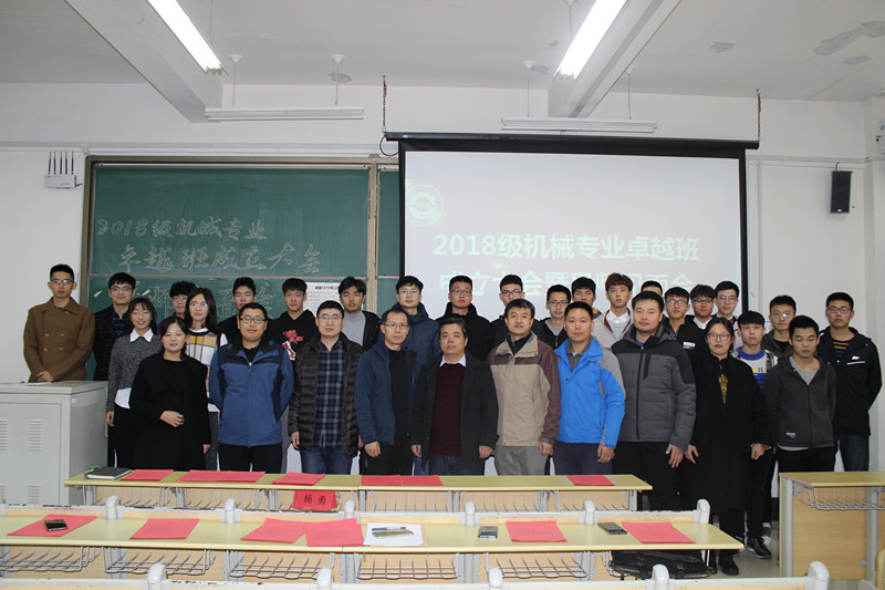 12月5日下午,MG冰球突破官网在嘉陵江路校区主教学楼B217教室举办机械设计制造及其自动化专业2018级“卓越工程师计划”试点班成立大会暨导师见面会。MG冰球突破官网副院长杨勇,机械设计教研室主任、学业导师江京亮及卓越班的全体导师出席此次大会。大会由班主任徐卫晓主持。