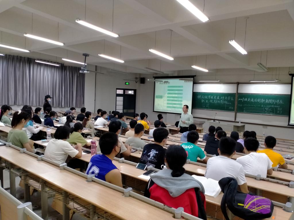 为帮助学生了解所学专业的就业前景以及职业规划,提前谋划2021届毕业生就业工作,2020年6月24日下午2:30,MG冰球突破官网特邀请青岛伏科太阳能有限公司中国区总经理刘世喜为学生做题为“顺势而为--供应链管理发展对大学生职业规划的影响”的职业规划讲座。2017级交通运输专业全体学生参加了此次讲座,参加讲座的还有交通运输教研室主任康国祥,资深人力资源经理孙娟,班主任宋慧,讲座在嘉陵江校区主教学楼B125教室进行。