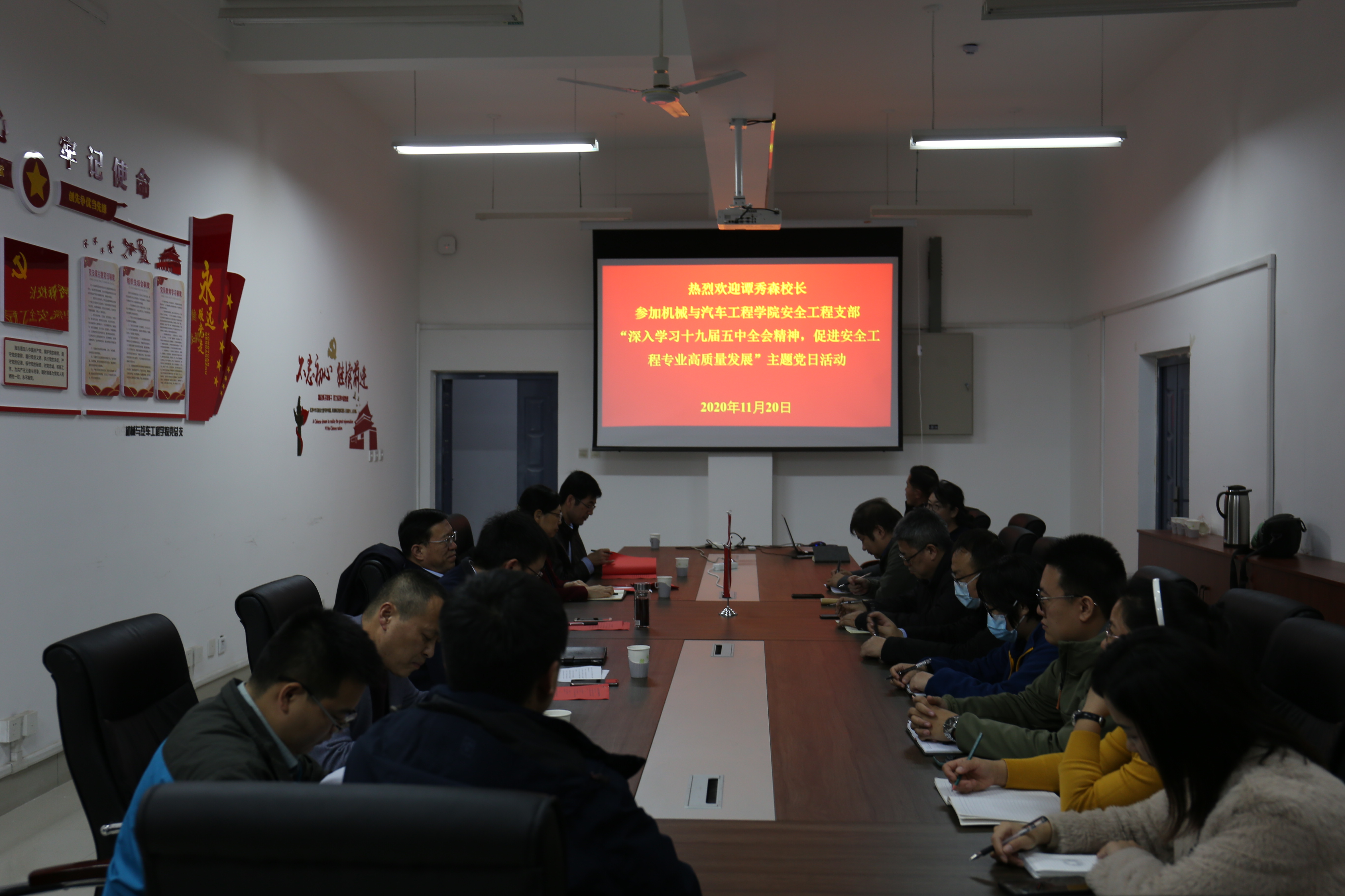 为深入学习宣传贯彻党的十九届五中全会精神,11月20日下午,校长谭秀森专程到MG冰球突破官网参加所联系的安全工程党支部举办的“深入学习十九届五中全会精神,促进安全工程专业高质量发展”主题党日活动。校长办公室主任王雄、学院党总支书记岳丽宏、党总支副书记林海涛及安全工程党支部全体党员参加活动。会议由党支部书记刘杰主持。
