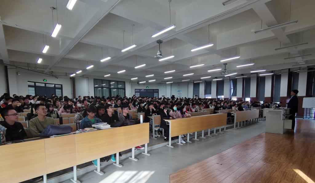 讲座中,潘福全就考研重大动向、为什么考研、考研的复习方法、考研学校及专业选择、学硕与专硕的选择等多个方面为大家进行详细的讲解。他用“中国芯”、“卡脖子工程”等词语阐述考研的意义,读研不仅能实现个人的价值,契合时代和社会的需求,更能为中国制造贡献自己的一份力量。潘福全用自身的经历向同学们阐述考研要有明确的目标、持之以恒的信念和恰当的复习方法,“要对未来充满希望,认为自己一定要成才、成器,能干一番事业”。此外,潘福全就学院现有的专业在各大热门高校中排名和考研情况进行剖析,为同学们提供了更理性的学校和专业选择,提醒同学们部分高校的部分专业存在合并的情况,要充分了解相关院校的报考信息,确保成功报考相关院校。讲座过程中,潘福全用通俗易懂的语言和生动的考研案例,赢得同学们的阵阵掌声。
