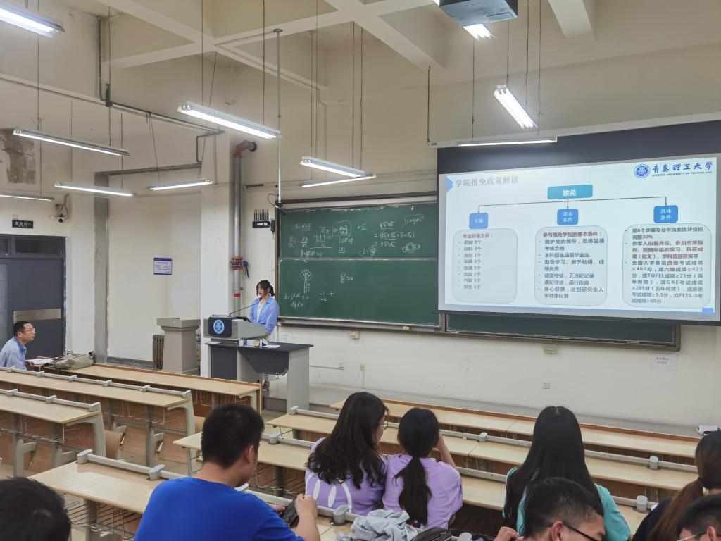 考研考公和出国成功的学长们为大家讲述相关政策及心路历程。从心态调整,时间安排,注意事项等方面,细致耐心地与到场同学进行交流。他们详细介绍了去年学院推免的名额分配、基本条件和具体要求,让同学们清晰地知晓学院推免的流程和需要从学习成绩、社会实践、专业技能、比赛、专利及论文等方面去努力的方向;以及参加夏令营需要做的前期准备、个人简历的书写以及联系导师的方法,为同学们顺利考研考公出国进行全方位的规划。交流会现场气氛热烈,学长们耐心解答了包括如何制定每日计划、面试、导师选择等诸多与考研息息相关的问题。