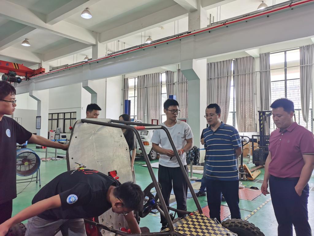在车队训练现场,董虎看望了方程式和巴哈车队留校备赛学生。他希望同学们精心准备、努力学习,不断提高理论水平和实践动手能力,出外参赛期间要服从指挥,注意自身安全,严格落实疫情防控措施,在确保安全的前提下,取得更多优异成绩。董虎还走访了学生实验室,详细了解学生暑假学习计划和考研打算,叮嘱学生合理规划暑假时间,认真开展学习、科研和竞赛活动,全面提升自身综合素养。