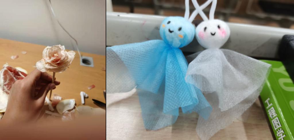 在“绿色低碳,变废为宝”活动中,学生以生活废品为原材料,通过“手工DIY”变废为宝,实现资源再利用。所收集的152件作品中,有废旧纸板做成的精美收纳盒,有空水瓶制作的美丽花朵,充分展现了学生资源循环使用的理念和精巧的艺术构思。