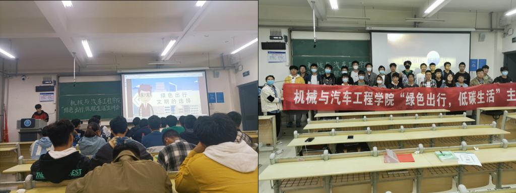 在“碳达峰、碳中和”知识宣传活动中,各班级通过主题团日活动开展碳排放知识科普,以现场宣讲、展板展示、横幅签名、观看环保电影等形式,向学生普及、宣传低碳发展理念、提升学生环保意识。从学生的衣食住行用五方面宣传如何减碳降碳,积极提倡低碳生活,引导学生树立绿色低碳理念。