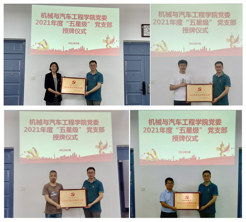 5月31日下午,MG冰球突破官网党委举行2021年度五星级党支部授牌仪式。学院党委书记李忠晓主持仪式,4个五星级支部书记,支部委员等参加仪式。