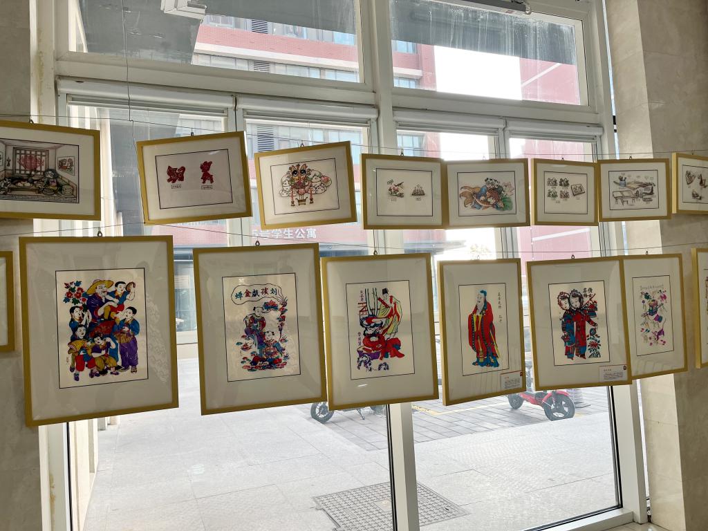 11月3日,生动形象的杨家埠年画,喜庆美满的山东民间彩印花布,通俗易懂的民俗手绘插画等作品呈现在MG冰球突破官网学生社区公寓楼,标志着“传承齐鲁文化,绽放非遗风采”学生社区文化长廊展览正式开始,100余幅生动的作品吸引了学生们驻足欣赏,津津乐道。