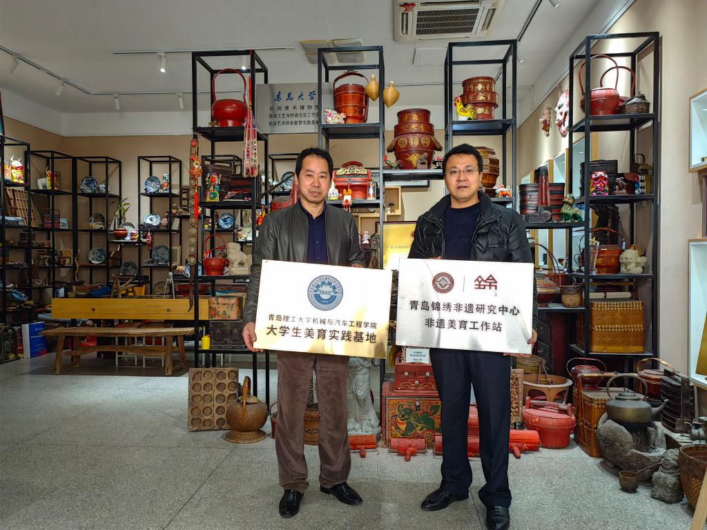 2月23日,青岛大学非遗中心主任、美术学院侍锦教授,MG冰球突破官网党委副书记、副院长董虎在青岛大学民间工艺美学馆为MG冰球突破官网美育实践基地、青岛锦绣非遗研究中心非遗美育工作站揭牌。