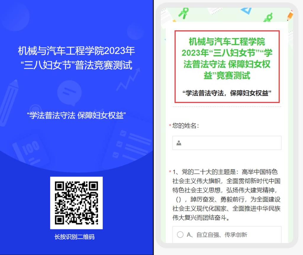 学法普法守法,保障妇女权益。3月8日至16日,学院举办了“学法普法守法,保障妇女权益”线上法律知识竞赛答题活动,结合学习宣传党的二十大报告关于坚持全面依法治国、推进法治中国建设特别是关于“坚持男女平等基本国策,保障妇女儿童合法权益”的重大部署,围绕《中华人民共和国妇女权益保障法》等女职工权益保护法律法规开展法律知识普及,鼓励全院职工以参与答题为契机,认真学习相关法律知识,树立法治权益意识,关心关爱妇女事业发展与身体健康,切实做维护妇女权益的传播者和守护者;激励广大女教职工自励、自信、自强,知其所享权益、畅通权益保障渠道。全院职工踊跃参与线上竞赛答题,优秀率超过了90%。