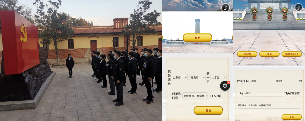 红色故地重游 革命精神恒久 学生党支部组织学生党员参观青岛党史纪念馆,了解青岛党组织发展,铭记“五四精神”,学生党员代表在现场重温入党誓词。“我们现在过着和平安宁的生活,是革命前辈们用鲜血和汗水换来的。我们要居安思危,在这个看似和平的时代,更应追寻红色足迹,传承红色精神,为保卫祖国时刻做好准备!”机械197刘春华说。此外,广大学生通过中华英烈网参与线上祭祀,为“最可爱的人”献花。通过绿色环保的英烈祭奠方式,向人民英雄致敬!