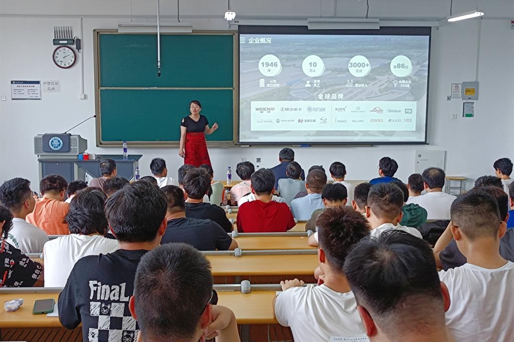宣讲会上,彭子龙介绍了MG冰球突破官网-潍柴现代产业学院的建设背景以及前期成果,指明校企合作的重要性与必要性,鼓励2024届毕业生做好时间规划,端正就业心态,做好就业准备。随后,管丽芳结合企业概况与产业发展趋势,从校企合作、事业平台、从事岗位与职业发展、人才培养实践等方面对潍柴现代产业学院进行了纵深解读,激发了在座同学的广泛兴趣。宣讲会现场,学生们踊跃提问,三位嘉宾耐心解答。“作为一名准毕业生,我希望能够借助校企合作的平台优势,进一步拓展自身专业能力,明晰职业发展方向。”来自车辆工程专业的学生罗盛翔说道。