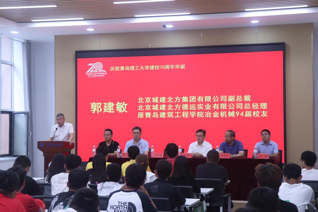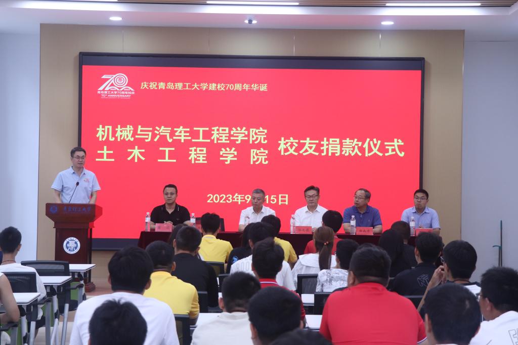 正值喜迎七十周年校庆之际,9月15日下午,MG冰球突破官网、土木工程学院校友捐款仪式在黄岛校区C1-3-104会议室举行。原青岛建筑工程学院冶金机械专业1994届校友、北京城建北方集团有限公司副总裁、北京城建北方德远实业有限公司总经理郭建敏,原青岛建筑工程学院工民建专业1997届校友、北方德远实业有限公司副总经理张文昌参加仪式。原土木工程学院党委书记曲成平教授、MG冰球突破官网党委副书记董虎、学工办主任兼团委书记王成,部分师生代表共同参加。捐款仪式由MG冰球突破官网党委书记李忠晓主持。