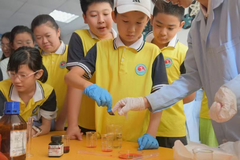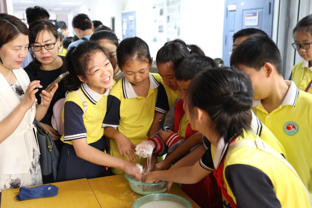 吃软不吃硬的“非牛顿流体”、体现摩擦生热原理的“钻木取火”……实验室精心设计的“奇特的摩擦闪电”“神奇的牛顿环”“钻木取火”“油水分离”等7个趣味小实验,让小学生们跃跃欲试,在实验室师生指导下,纷纷动手参与。