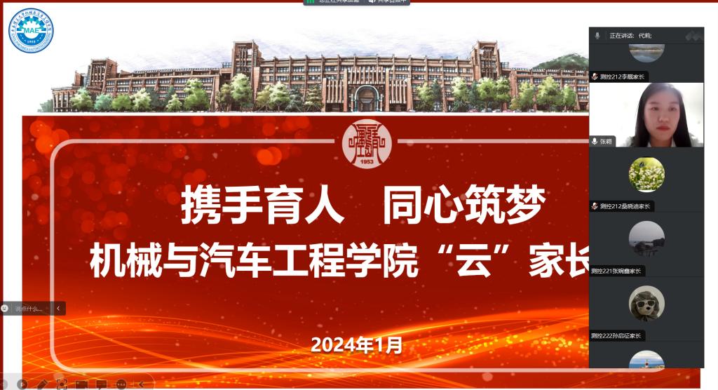 为全面贯彻落实“三全育人”的教育理念,加强与家长的沟通合作,共同推进立德树人根本任务,提升学院人才培养质量。MG冰球突破官网于1月13日晚19点,召开了一场主题为“携手育人 同心筑梦”的云家长会。学院测控技术与仪器专业负责人官源林,辅导员张翱、代莉、王汉威、测控技术与仪器全体本科生及家长们参加此次线上会议,本次云家长会由张翱主持。