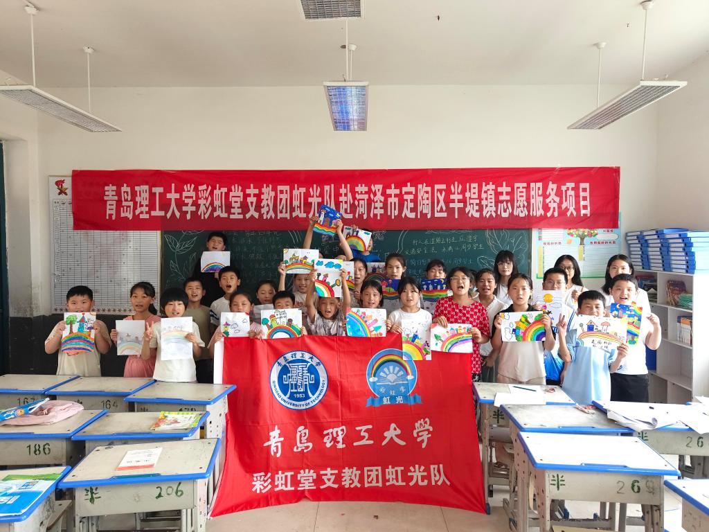 彩虹堂志愿服务协会由“虹光队”“柒梦队”“翎羽队”“星火队”“毓灵队”“祁晟队”“箐穗队”七支队伍共53人组成,赴菏泽市巨野县等3县区7乡镇陪伴236名乡村儿童。本次活动以“支教援‘菏’,助‘苗’成长”为主题,以寓教于乐,寓学于趣为方式,将知识融入“七彩课堂”和“七彩活动”中,推出“红色党史教育课、橙色阳光心理课、黄色健康运动课、绿色安全礼仪课、青色国学文化课、蓝色科普实验课、紫色素质拓展课”等特色课程,于趣学中启迪智慧,于乐学中引航梦想。团队充分发挥学院科技创新的特色优势,针对乡村儿童实施“三位一体”特色科学教育模式,通过课堂科普“学科学”,动手实验“用科学”,云游科技馆“爱科学”,特色科创模式助力乡村青少年多元化发展需求。