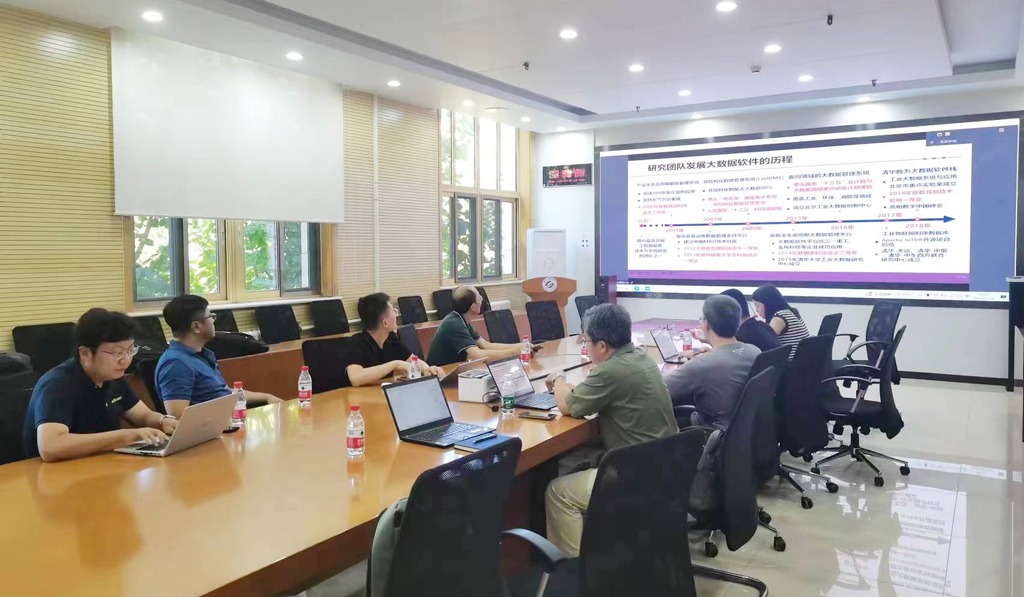 7月18日,王优强、代沅兴、黄居鑫一行3人到清华大学软件学院开展交流活动,清华大学软件学院信息系统与工程研究所副研究员刘英博、副研究员黄向东参与交流。会议由黄向东主持。交流会上,刘英博介绍了清华大学软件学院基本情况及典型科研成果“领域大数据应用开发工具DWF”,黄向东介绍了典型科研成果“工业物联网时序数据库管理系统IoTDB”。交流过程中,双方参会人员就DWF和IoTDB在本科实验实训基础教学和智能制造产业应用方面展开了热烈讨论,分享了各自的经验和见解,探讨了未来合作的可能性。