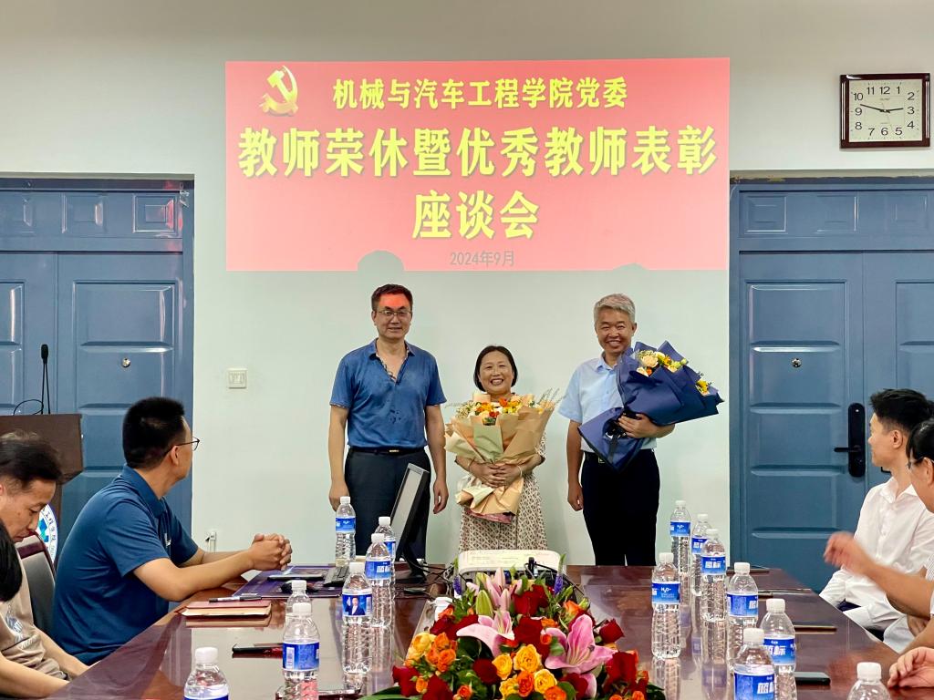 时维九月,桃李沁芳,第40个教师节如约而至。为深入贯彻党的二十大精神和习近平总书记关于教育的重要论述,大力弘扬教育家精神,MG冰球突破官网在汽车实验楼408会议室举办教师荣休暨优秀教师表彰座谈会。学院党委书记李忠晓、副书记兼副院长董虎、副院长王进,荣休教师姜培刚、李志文以及部分优秀教师代表参加,会议由董虎主持。
