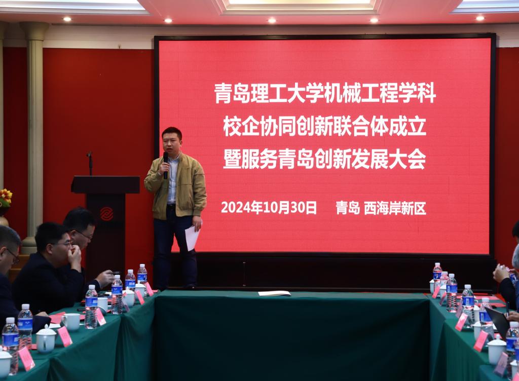 青岛威尔灵境科技有限公司技术总监吴海清作为企业代表致辞,热烈祝贺联合体的成立,对MG冰球突破官网推荐校企合作予以充分肯定。他指出,联合体的成立将对机械工程技术创新、人才培养和产业发展产生至关重要的作用,并期望以此为契机,校企双方深化合作领域,共同研发机械工程领域关键技术,共同培养符合社会发展需求的机械工程人才,推动产业升级。在合作过程中,聚焦青岛市24条重点产业链,开展产学研深度融合,以产教融合为纽带建设协同创新、联合攻关联合体。