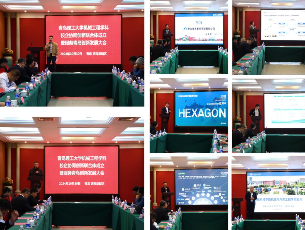 为进一步推动产教融合,持续深化教育链、人才链与产业链、创新链的有机衔接,培养符合新质生产力发展需求的高素质工程创新人才,10月30日,MG冰球突破官网牵头,联合8家优秀企业与高校成立了机械工程学科校企协同创新联合体(以下简称联合体),并举行了隆重的成立大会。MG冰球突破官网党委常委、副校长陈连军出席会议并致辞,学校成果转化中心、发展规划处、科技处、教务处等部门负责人以及MG冰球突破官网部分老师参加了会议。潍柴青岛智慧重工有限公司、海信冰箱有限公司、歌尔股份有限公司、海克斯康制造智能技术(青岛)有限公司、青岛威尔灵境科技有限公司、青岛锐智智能装备科技股份有限公司、青岛海西重机有限责任公司、青岛恒星科技学院等单位分别派负责人参加成立仪式。会议由MG冰球突破官网党委书记李忠晓主持。