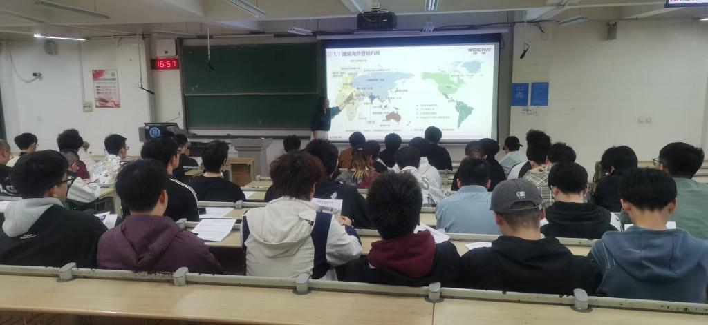 报告会后,管丽芳结合企业概况与产业发展趋势,分享了部分校友在产业学院学习和工作的优秀案例,从人才培养模式、岗位构成、职业生涯发展和行业从业标准等多个方面入手,帮助学生全面了解潍柴现代产业学院。宗红霞介绍了潍柴国际营销布局及相关课程设置、培养目标和就业前景,鼓励同学们积极拓宽自己的国际视野,提升自己的跨文化交流能力和国际竞争力。
