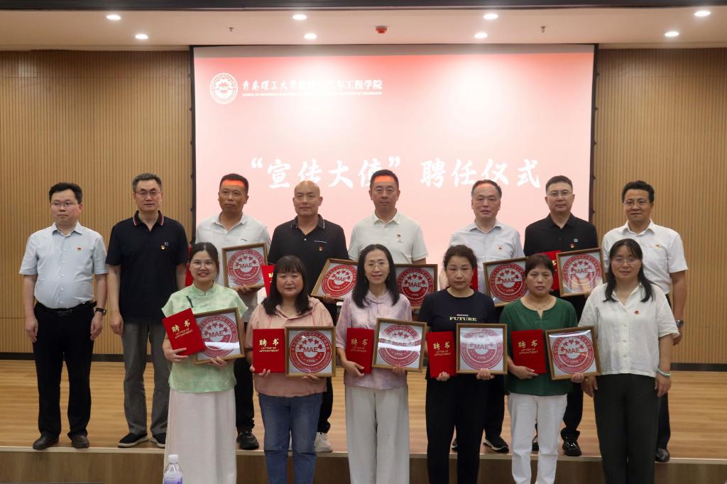 党徽里的家风传承。在庄重的佩戴仪式中,党员家长与学院党委书记李忠晓、学校合作发展处副处长韩永剑、学院副院长杨发展、全国优秀教师刘晓玲等老师共同为毕业生党员佩戴党徽。“父亲的手在颤抖,但党徽贴在我心口滚烫。”即将赴香港理工大学深造的毕业生王凤轩说。现场同步为推免至中国农业大学的刘雨霏等11名优秀毕业生颁发“校友大使”聘书,并向学生家长授予“宣传大使”荣誉。2025年度“青选计划”入围者鹿美林妈妈接过“宣传大使”聘书时激动表示:“孩子即将踏上工作岗位,将青春融入基层沃土,这正是理工精神在祖国大地生根发芽的体现!”