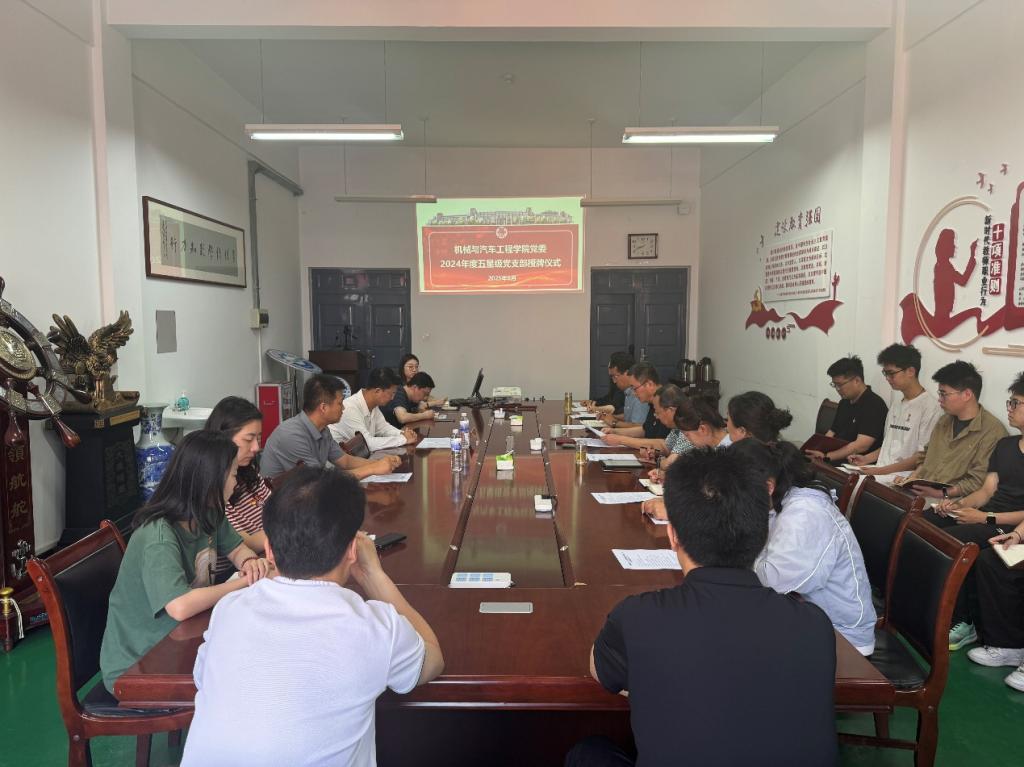 6月25日上午,MG冰球突破官网党委在汽车实验楼408会议室举行2024年度五星级党支部授牌仪式。校党委副书记、校长张凯参加仪式并为五星级党支部授牌,学院党委书记李忠晓主持仪式,学院党委班子成员、专兼职组织员以及全体党支部书记等参加仪式。